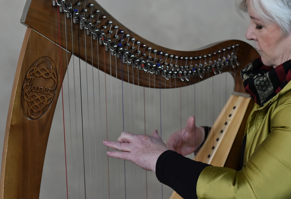 In 2016, Janet returned to Northern Ireland as Visiting Professor of Music at Ulster University at Magee College, L’Derry. Revisiting her academic interests in ethnomusicology, psychology, linguistics and pedagogy, much of her time is now spent researching, writing and organising the considerable archive of the Belfast Harp Orchestra, the Traditional Harp School (her training & examination programme), and managing her catalogue of publications.
